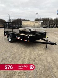Single 3,500lbs Spring Axle w/Easy Lube Spindles ST205/75R15 LRD Radial Tires Double Eye Spring Suspension 2" A-frame Coupler 2000lb A-Frame Jack 4' Straight Ramp w/Mesh 16" Full Steel Side w/3" Tie Rail Spare Tire Mount Pressure Treated Wood Floor (4) Welded In D-Rings Powder Coated Sealed Beam L.E.D. Lights and Harness System 4-way Flat Plug Transport Canada & DOT Approved Lighting 1 Year Limited Warranty