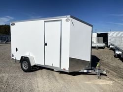All Aluminum Frame 2" x 3" Tube Frame on Single Axles 2" x 4" Tube Frame on 3500lb Tandem Axles (up to 14') 2" x 5" Tube Frame on 3500lb Tandem Axles (16' and up) 2" x 5" Tube Frame on 5200lb Tandem Axles 3500lb Lippert Spring Axle w/EZ Lube Hubs (1) 12V LED Dome Light w/Switch Double Rear Door (5x10, 6' and 7' Wide Models) Single Swing Out Door (5x8 Wide Models) Aluminum Cambar (Double Rear Door Models) Aluminum Camlocks Screwless .030 Aluminum Exterior LED Exterior Lighting 2' V-Nose (Sloped) ST185/80R13 (5x8 Model) on Silver Mod Rim ST205/75R15 Radial on Silver Mod Rim (3500lb axles) ST225/75R15 Radial on Silver Mod Rim (5200lb axles) Tongue Jack 3/4" Engineered Wood Floors 3/8" Engineered Wood Walls .024 Seamless Aluminum Roof 32" Side Access Door w/Flushlock (N/A on 5x8 Model) 16" Aluminum Stoneguard (Sloped) (2) Side Flowthru Vents 16" On Centre Wall Crossmembers 24" On Centre Floor Crossmembers 24" On Centre Roof Crossmembers 2" Coupler (Single Axle Models) 2 5/16" Coupler (7x12 Single Axle and Tandem Axle Models) 1 Year Warranty-5 Year Axle Warranty-2 Year Tredit Advantage Roadside Assistance
