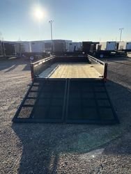 Tandem 5200 lbs. Axles w/Easy Lube Spindles 15" ST225/75R15 LRE Radial Tires Electric Brakes on Both Axles Slipper Spring Suspension 2-5/16" Adjustable Coupler or 3" Lunette Eye 12,000 lbs. Drop Leg Jack 5' Heavy Duty Spring-Assisted Split Ramps w/Mesh 14" Solid Steel Side w/ 3" Tie Rail Spare Tire Mount Pressure Treated Wood Floor Stake Pockets (6) Welded In D-Rings Powder Coated Sealed Beam L.E.D. Lights and Harness System 7-way RV Plug Transport Canada & DOT Approved Lighting 1 Year Limited Warranty
