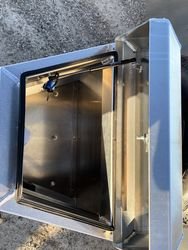 (2) Hinged Rear Ramps, 60" L x 16" W, tube frame with angle cross-members, store in upright position,adjustable side to side to match track width