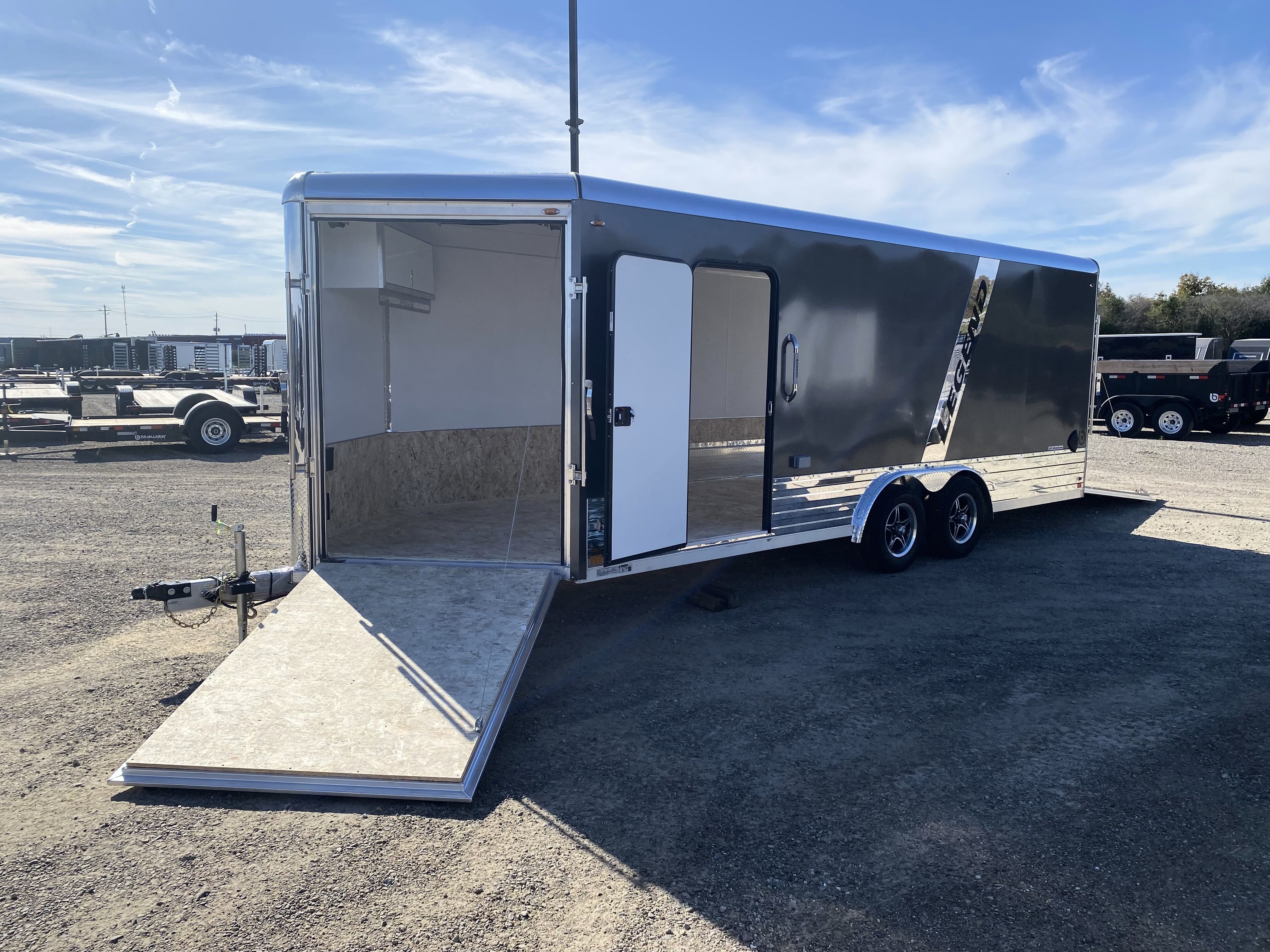 Legend's Deluxe Snow 8' Wide Enclosed Snowmobile Trailer is the ultimate choice for users with a variety of powersports toys. We've taken our #1 selling cargo model, the DVN, and equipped it with an extra foot of nose space, 44" overhead cabinet w/ clothes bar, and a self-mating front ramp door on our 8' wide chassis to create what may be the most flexible enclosed trailer on the market.
