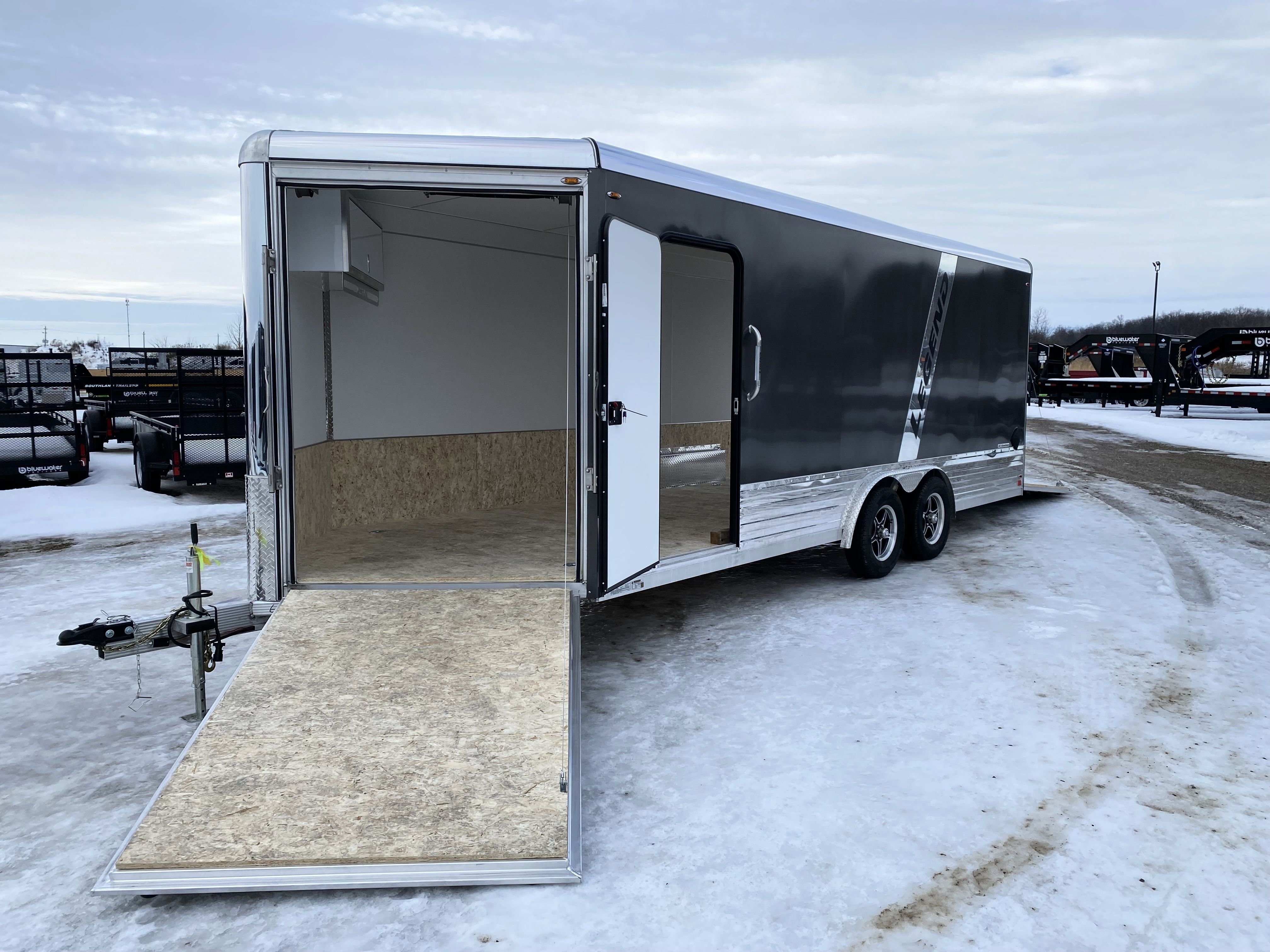 Legend's Deluxe Snow 8' Wide Enclosed Snowmobile Trailer is the ultimate choice for users with a variety of powersports toys. We've taken our #1 selling cargo model, the DVN, and equipped it with an extra foot of nose space, 44" overhead cabinet w/ clothes bar, and a self-mating front ramp door on our 8' wide chassis to create what may be the most flexible enclosed trailer on the market.