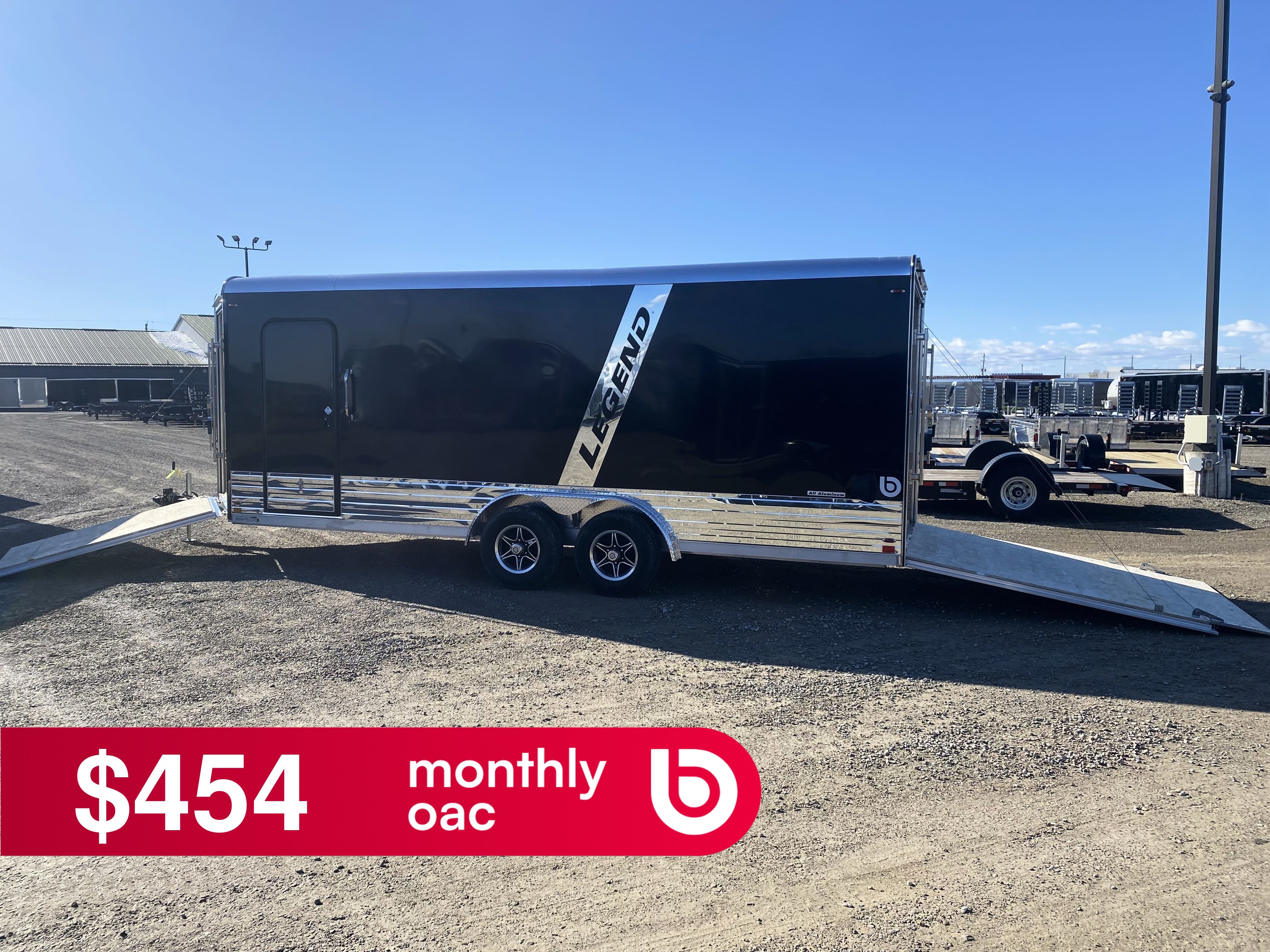 Legend's Deluxe Snow 8' Wide Enclosed Snowmobile Trailer is the ultimate choice for users with a variety of powersports toys. We've taken our #1 selling cargo model, the DVN, and equipped it with an extra foot of nose space, 44" overhead cabinet w/ clothes bar, and a self-mating front ramp door on our 8' wide chassis to create what may be the most flexible enclosed trailer on the market.