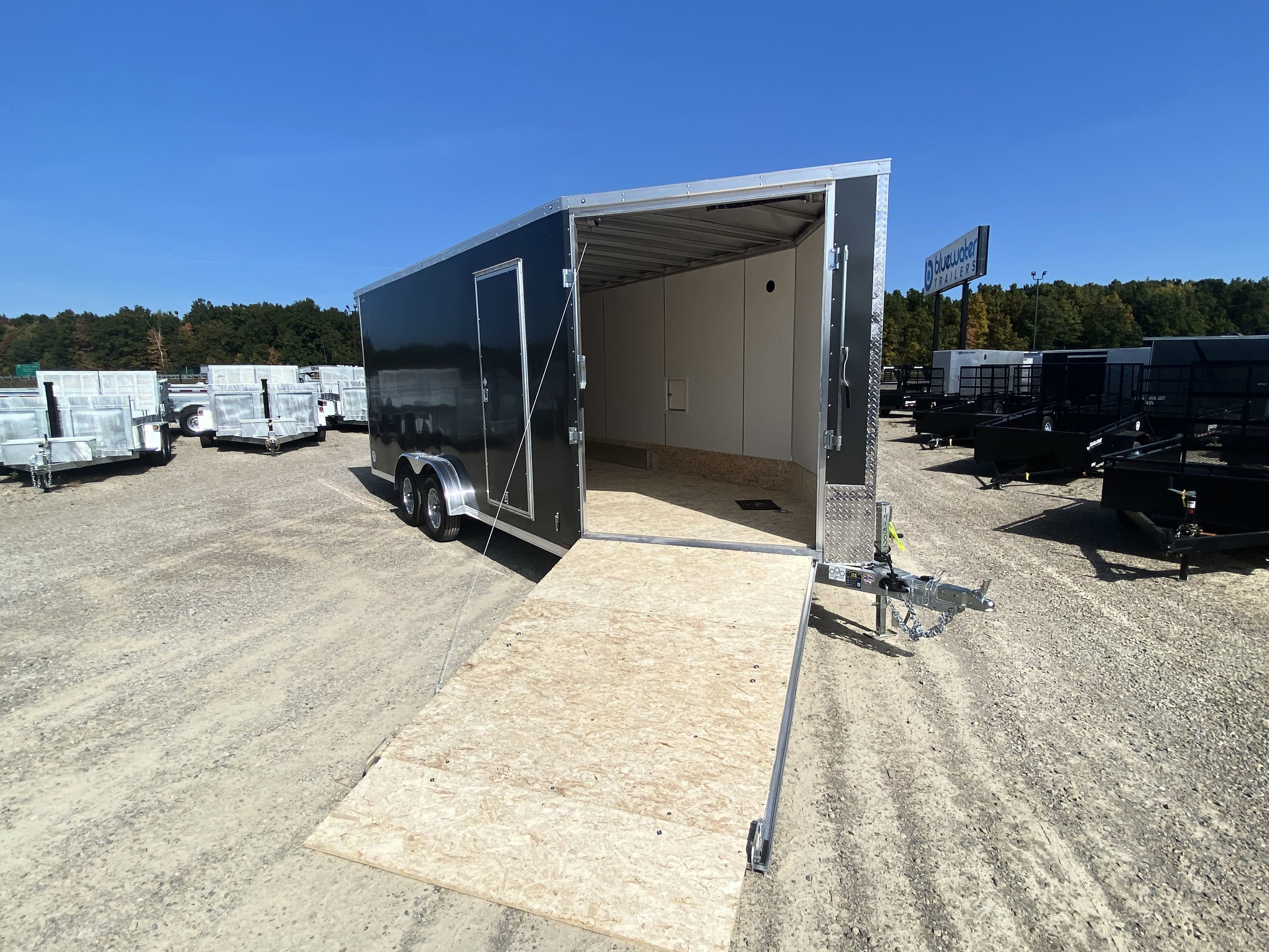 - Lightning Radar Package (White Vinyl Walls, Aluminum Rim Upgrade, 24" Stoneguard Upgrade, Fuel Door (Total of (2) on Models over 19ft), Front & Rear Ramp Door Flaps, 16" OC Floor , 16" OC Ceiling)