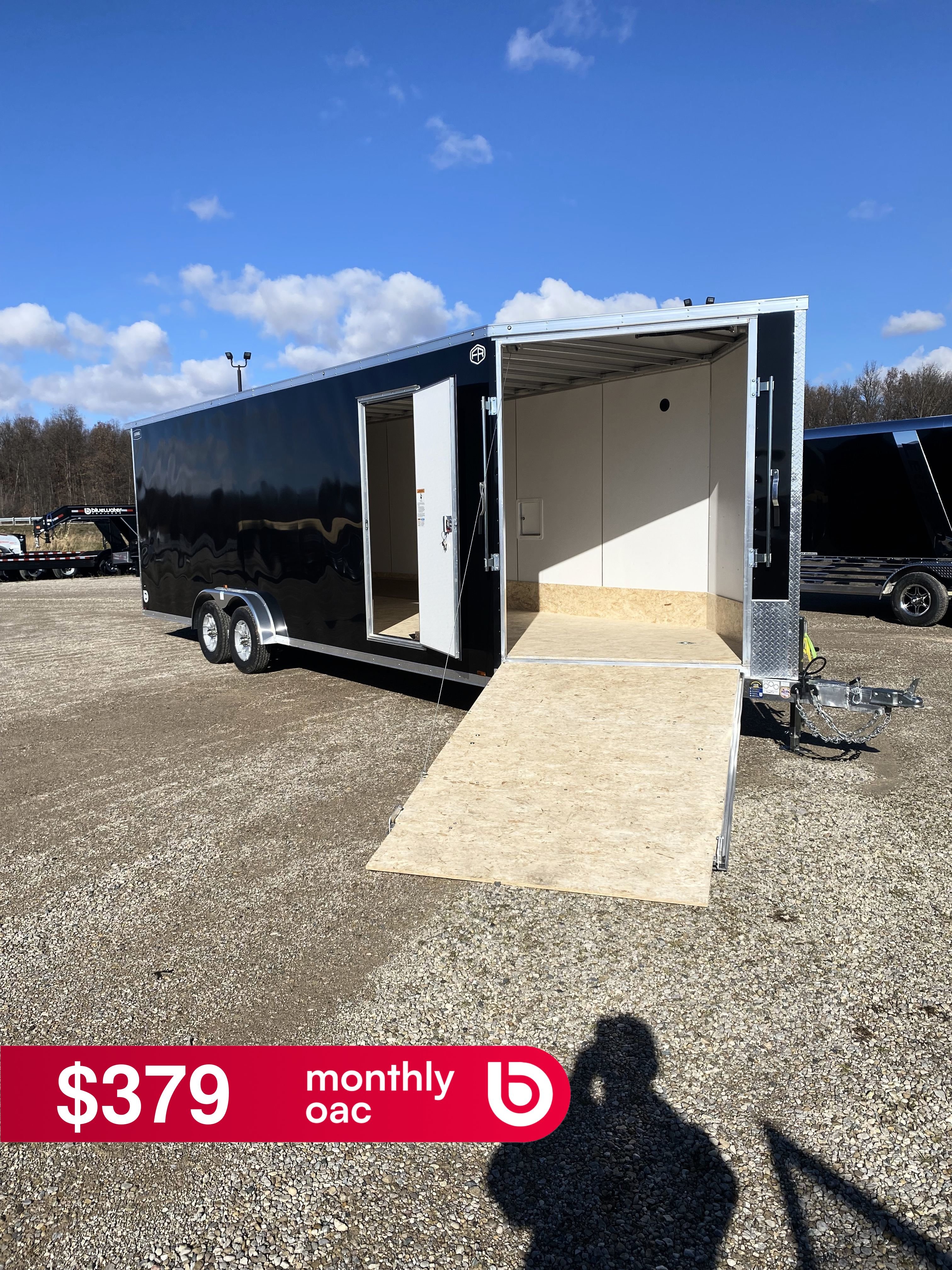 - Lightning Radar Package (White Vinyl Walls, Aluminum Rim Upgrade, 24" Stoneguard Upgrade, Fuel Door (Total of (2) on Models over 19ft), Front & Rear Ramp Door Flaps, 16" OC Floor , 16" OC Ceiling)