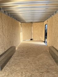 Aluminum 2" X 6" Tube Frame Aluminum 1" X 2" Tube Roof Bows 16" On Centre Aluminum 1" X 1.5" Tube Wall Post 16" On Centre Aluminum 2" X 3" Tube Floor Cross Members 16" On Centre Triple Tube A-Frame Steel Reinforced Tongue (36") Self Mating Rear Ramp Door w/Spring Assist 3500Lb Dexter Torsion Axles w/E-Z Lube System ST225/75R15 Nitrogen Filled Radial Tires On Silver Mod Wheels .030 Screwless Aluminum Exterior Skin 36" X 68" Curbside RV Side Door w/Flush Lock & Plastic Holdback With Black Frame (2) Plastic Side Air Vents Seamless One Piece Aluminum Roof 3/4" Engineered Wood Flooring 3/8" Engineered Wood Interior Wall Covering (1) 12V Interior Euro Dome Light LED Exterior Lighting ATP Wheel Boxes & Flares 16" ATP Stone Guard 2' V-Nose Corrosion Resistant Zinc Door Hardware 2 5/16" A-Frame Coupler 2000LB Top-Wind A-Frame Jack w/Foot 10 Year Axle - 2 Year Limited Warranty