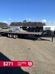 Tandem 7,000 lbs. Axles w/Easy Lube Spindles Electric Brakes on All Axles ST235/80R16 LRE Radial Tires Slipper Spring Suspension 12,000 lbs. Drop Leg Jack Adjustable 2-5/16" Coupler or 3" Lunette Eye 5' Beavertail with Wood Floor 5' Spring Assisted Wedge Ramps Light Weight, Rigid Frame 16" OC Crossmembers Stake Pockets & Rub Rails Spare Tire Mount (2) Side Steps Sand Blasted & Treated with Phosphate Powder Coating on Models up to 25' in Length Epoxy Primer & Two Component Polyurethane Paint on Models over 25' Pressure Treated Wood Floor Sealed Beam L.E.D. Lights and Harness System 7-way RV Plug Transport Canada & DOT Approved Lighting 1 Year Limited Warranty