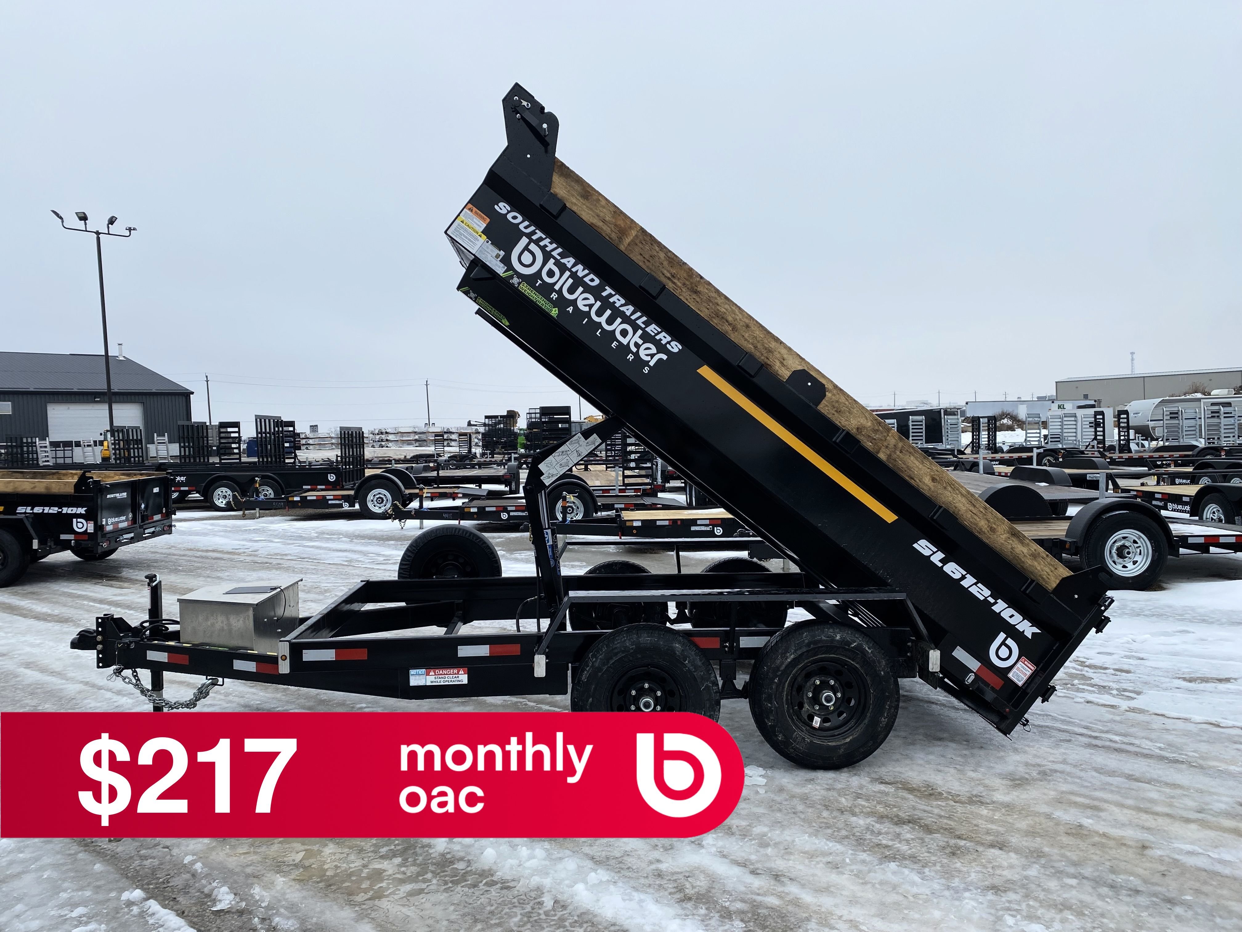 Model #: SL612-10K Dimensions: 6' x 12' GVWR: 11400# lbs Axles: TANDEM Box Width:74" Brakes:ELECTRIC Deck Height:24" Oa Length:203 1/2" Payload:8865# Weight:2575# Wheels:5