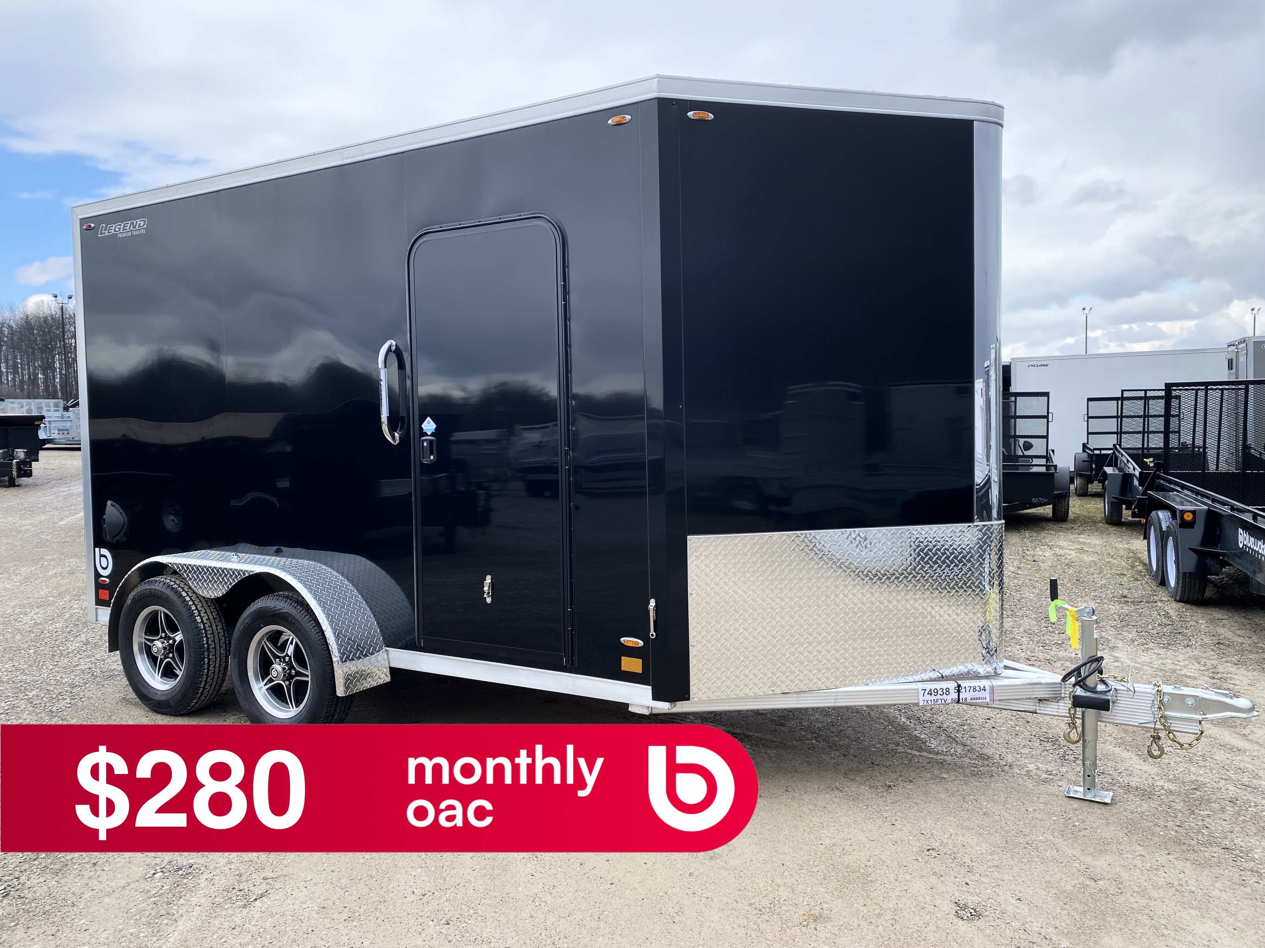 Model #: 715FTVTA35 Dimensions: 7' x 15' GVWR: 7000LB lbs Axles: TANDEM Box Length:12' Brakes:ELECTRIC Interior Height:7' Interior Length:14' 9" Interior Width:6' 7" Oa Height:8' 8" Oa Length:18' 2" Oa Width:8' 6" Payload:5490LB Rrdo Height:6' 7" Rrdo Width:71" V-Nose Length:3' Weight:1510LB Wheels:4