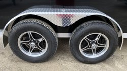 Aluminum 2" X 4" Tube Perimeter Frame Aluminum 1" X 1.5" Radius Tube Roof Bows 16" On Center Aluminum 2" X 3" Tube Floor Cross Members 24" On Centre Aluminum 1" X 1.5" Tube Walls Cross Members 16" On Center 3" X 6" Extruded Aluminum Triple Tube Tongue (32") 3500LB Dexter Torsion Axles W/ E-Z Lube System (2 Electric Brakes on Tandem Axle) .030 Screwless Aluminum Exterior Skin Seamless One Piece Aluminum Roof Aluminum Wheels ST205/75R15 ATP Fenders 30" X 68" Curbside RV Side Door w/Flush Lock & Aluminum Holdback w/Black Frame 3' V-Nose - Bright Polished Radius 24" ATP Stone Guard LED Exterior Lighting (2) 12V Rectangle LED Interior Dome Lights w/Wall Switch 3/4" Engineered Wood Flooring 3/8" Engineered Wood Interior Wall Covering (2) Plastic Side Vents 2 5/16" Straight Coupler (Tandem Axle) 2" Straight Coupler (Single Axle) (4) 1000LB D-Rings Shipped Loose Self Mating Rear Ramp Door w/Spring Assist w/Stainless Steel Door Hardware Lighted Side Entry Door Grab Handle 2000LB Top-Wind Set Back Jack W/Foot Limited 10 Year Axle - Limited Lifetime Structural - Limited 1 Year Floor - Limited 25 Year Roof Warranty